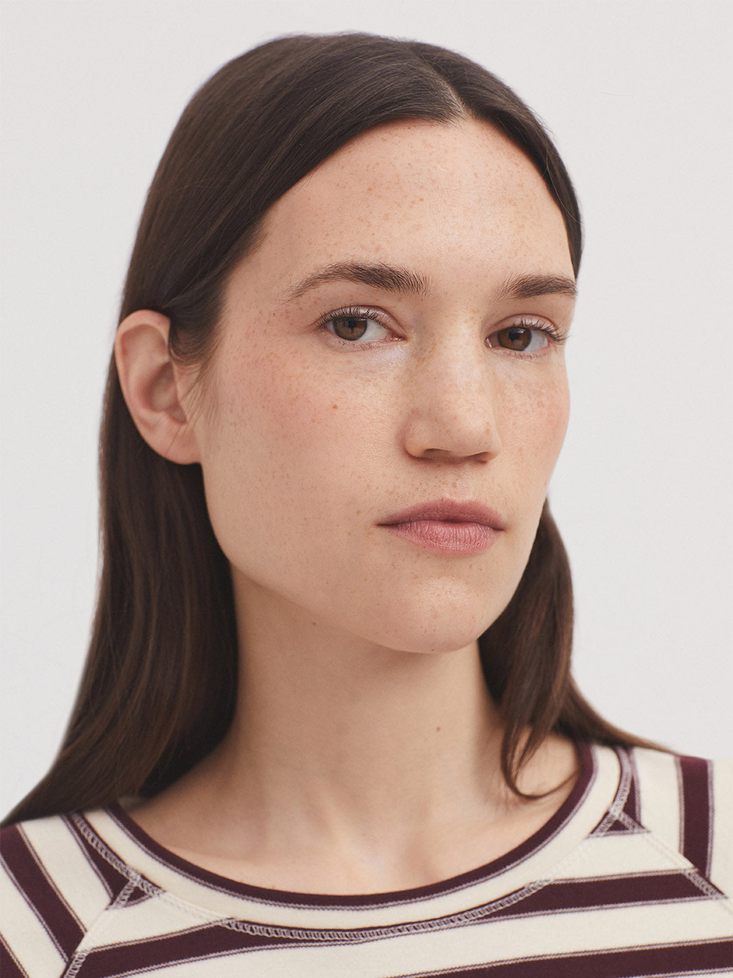 Disponibile nei colori ecru-rosso e navy blue-verde
